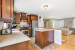 Functional kitchen with wooden cabinets and an island offering extra storage.
