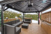 The fenced yard is landscaped to take full advantage of sunny days in a functional and pleasant environment.