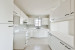 La cuisine, en retrait mais semi-ouverte sur la salle à manger, propose un espace fonctionnel avec de nombreuses armoires pour le rangement, un plan de travail étendu ainsi qu'un dosseret facile d'entretien.