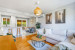 Salle à manger attenante à la cuisine, avec porte patio donnant un accès direct à la terrasse couverte et à la cour.