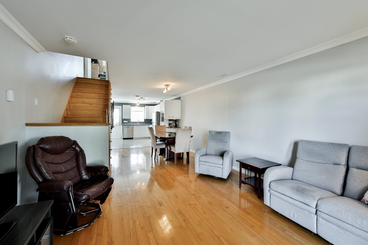 Le rez-de-chaussée propose un espace de vie à aire ouverte où le salon, la salle à manger et la cuisine se succèdent harmonieusement. Les grandes fenêtres laissent entrer une belle luminosité naturelle. La cuisine est aménagée de façon fonctionnelle avec plusieurs rangements. Une salle d'eau est également aménagée sur ce niveau pour plus de commodités.