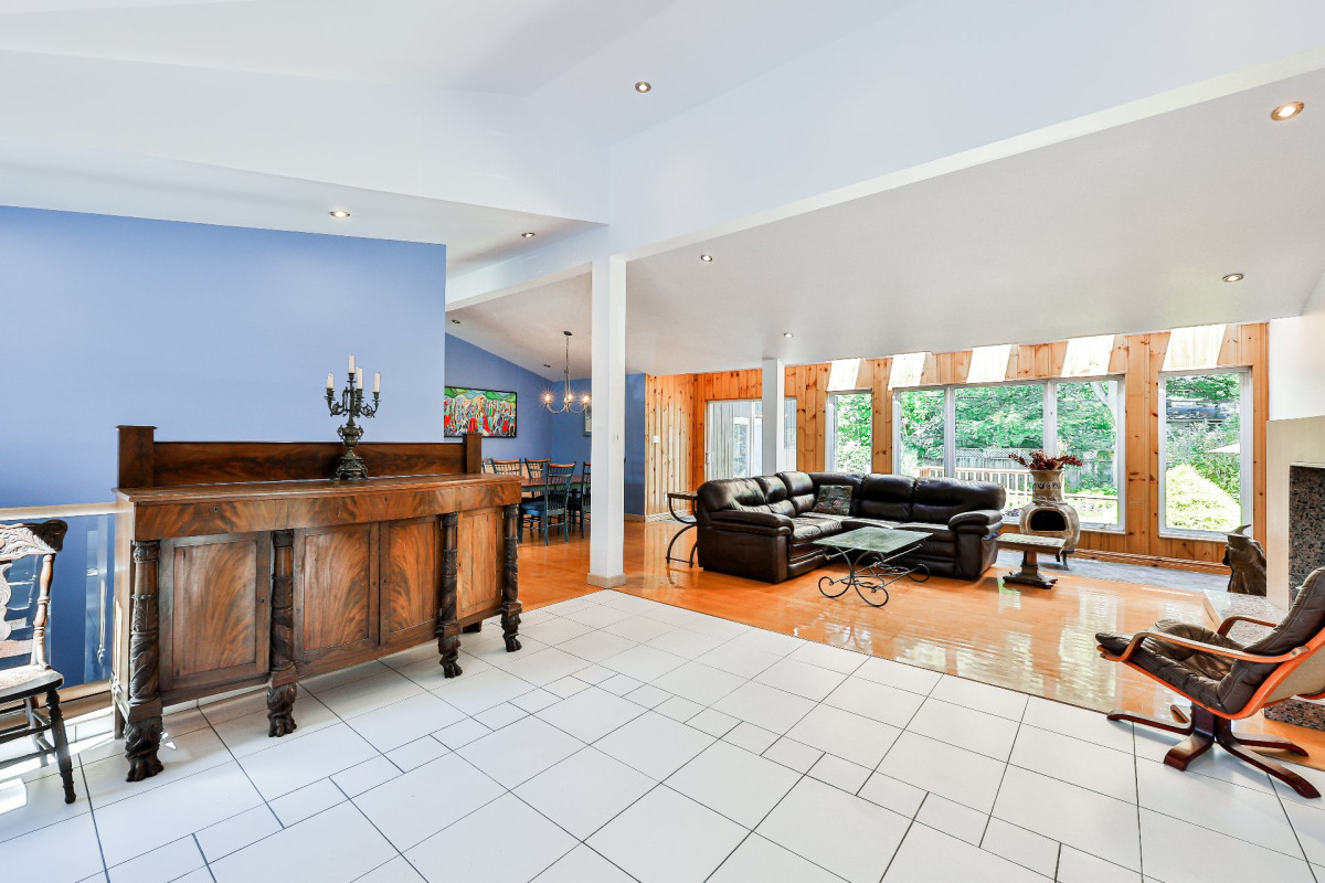 Le niveau inférieur impressionne par son espace et sa polyvalence. Deux chambres supplémentaires s'y trouvent, idéales pour accueillir la famille ou aménager un bureau. Une grande salle familiale avec foyer au bois complète ce niveau et devient l'endroit parfait pour se réunir. On y retrouve également beaucoup d'espace de rangement et un atelier pratique pour les passionnés de bricolage.