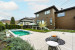 Superbe piscine creusée entourée d'un vaste patio en béton et d'un aménagement floral soigné.