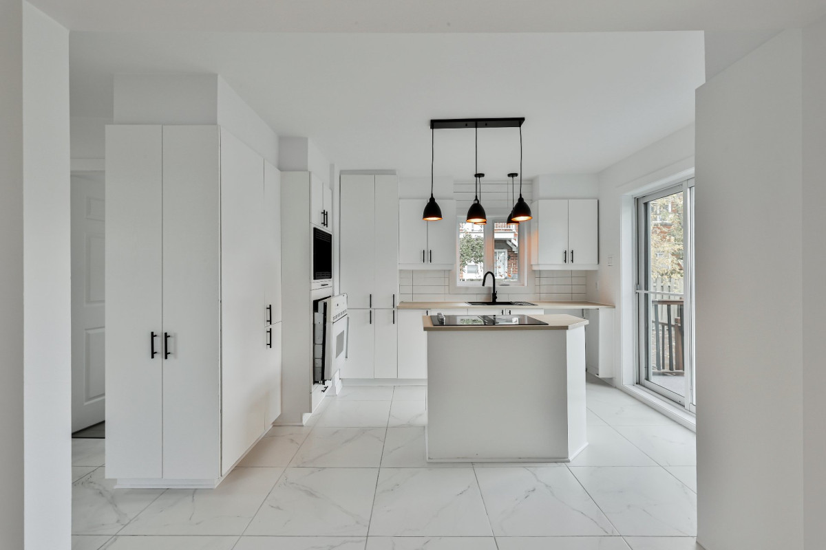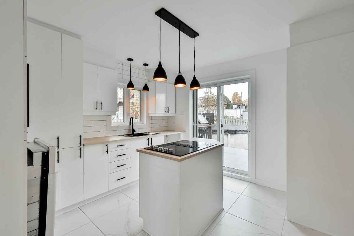 Le sous-sol, entièrement aménagé, ajoute un espace de vie polyvalent pouvant servir de salle familiale, de salle de jeux ou de coin cinéma. De belles armoires intégrées optimisent le rangement tout en apportant une touche design à la pièce.