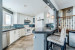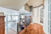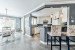 La salle à manger lumineuse se prolonge vers une cuisine pratique, bien organisée et agréable à utiliser au quotidien.
