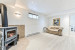 Le rez-de-chaussée propose un salon accueillant doté d'un foyer au gaz 3 faces, idéal pour créer une ambiance chaleureuse.